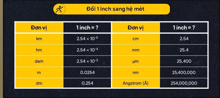 1 Inch bằng bao nhiêu các đơn vị đo thường dùng