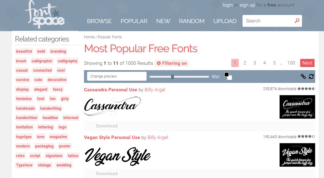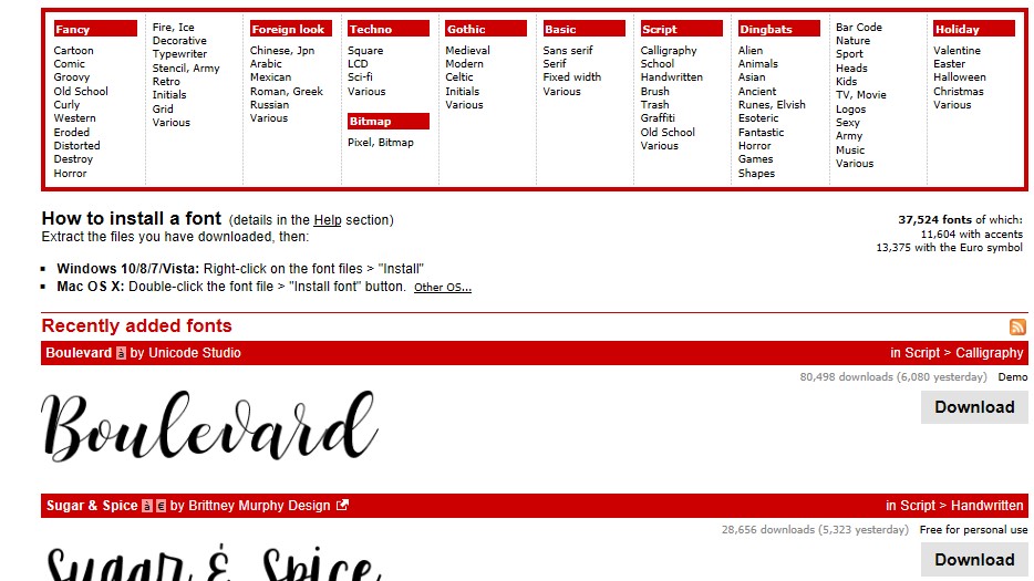- Tất cả các font chữ trên FontSpace đều được phân loại theo thể loại để dễ dàng tìm kiếm.
